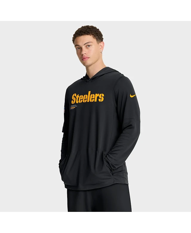 Nike Men's Black Pittsburgh Steelers Big Tall Sideline Performance Long Sleeve Hoodie T-Shirt