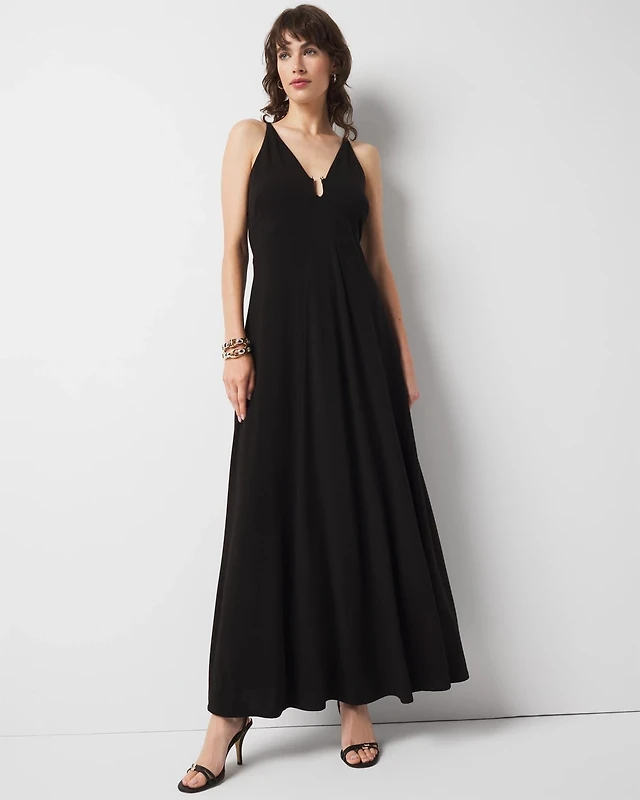 Reistor Women's Flowy A-Line Maxi Dress with Side Slits Black