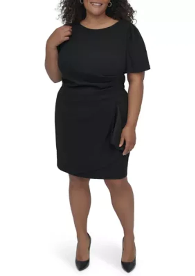 Plus Solid Scuba Crepe Fit and Flare Dress