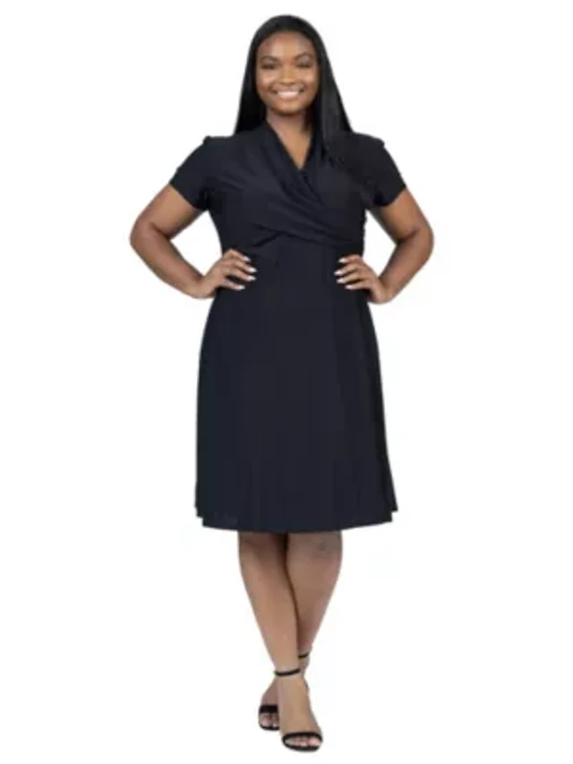 Perceptions Womens Plus Short Sleeve Fit + Flare Dress