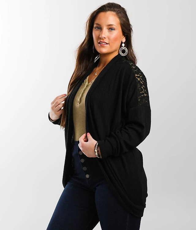 Ny Collection Plus Long Sleeve Knit Cardigan with Chiffon Back