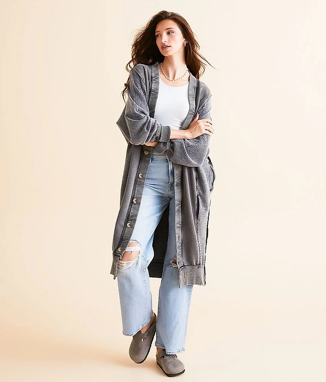 Women's Long Sleeve Brushed Terry Ribbed Cardigan