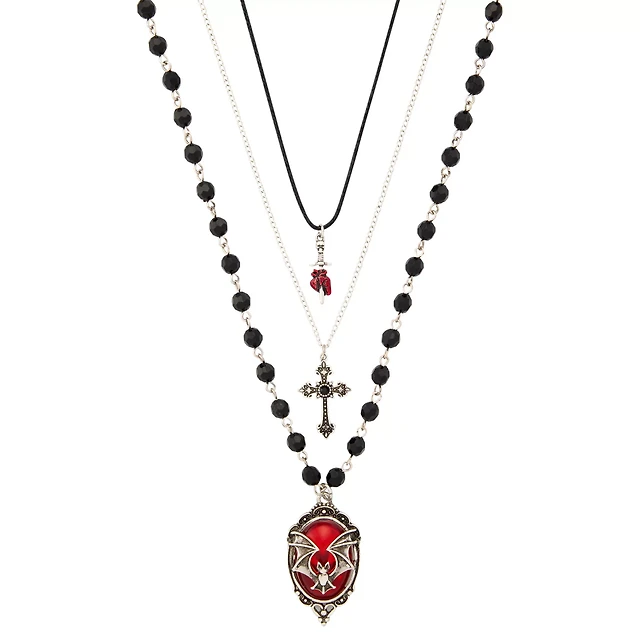 Multi-Pack Red Spike Rose Sword Chain Choker Necklaces - 3 Pack