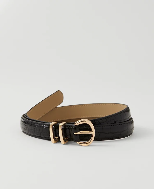 Ann Taylor Skinny Snake Patent Leather Belt Black Women's