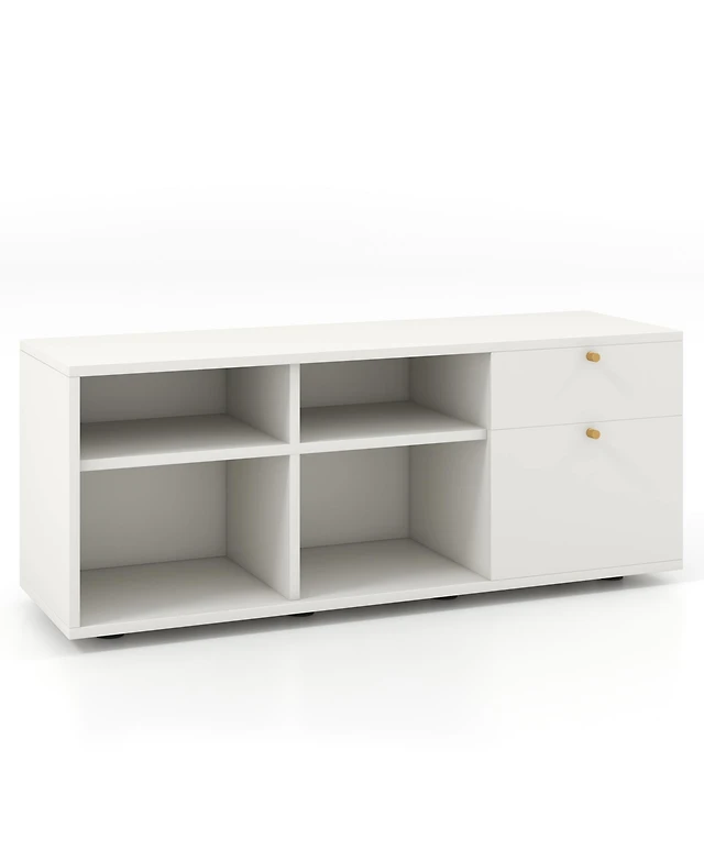 48 Inch Sideboard Buffet Cabinet Floor Storage Cabinet with 2 Bamboo Woven Doors-White