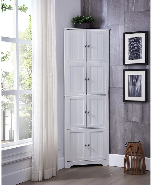 Tribesigns 78'H Corner Cabinet, Farmhouse Kitchen Pantry Storage Cabinet, Ventilated Grille Style Doors, Walnut
