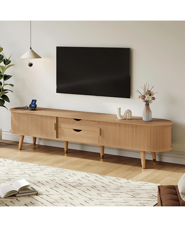 Streamdale Farmhouse Tv Stand with Gourd-Shaped Legs & Bookshelves, White