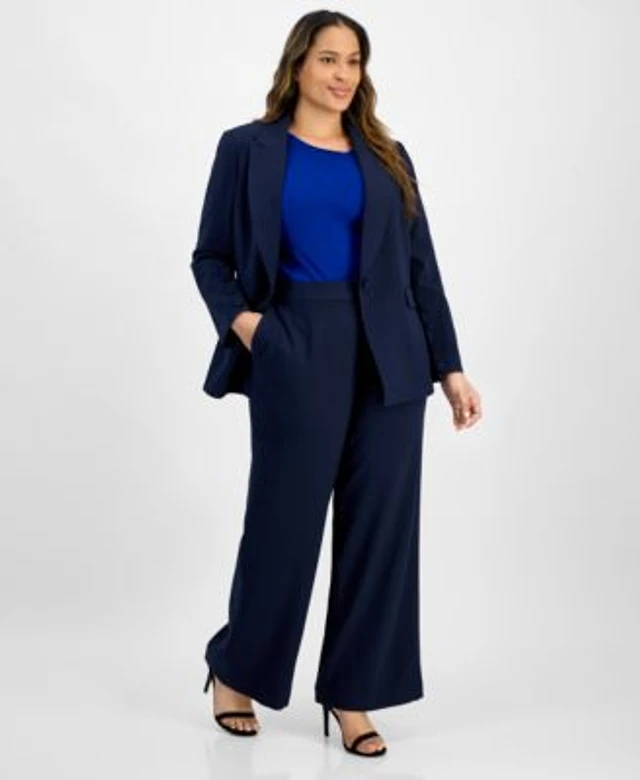 Tahari Asl Plus Size One Button Blazer Knit Top Wide Leg Pants