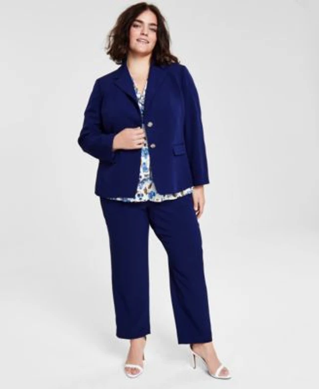 Kasper Plus Size 3 4 Sleeve One Button Blazer Sleeveless Printed Knot Front Blouse Stretch Crepe Fly Front Pants