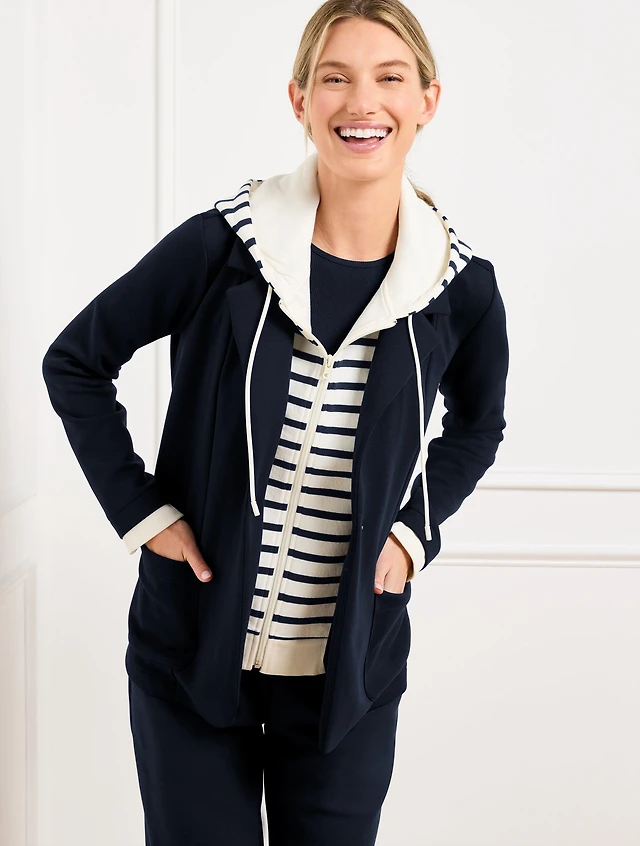 Ann Taylor Petite Weekend Greenwich Blazer Brushed Knit Moon Rock Heather Women's