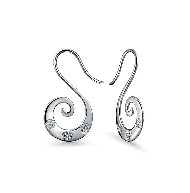 Bling Jewelry Artisan Tribal Flower Blossom Swirl Wire Spiral Pull Through Hoop Threader Earrings Sterling Silver