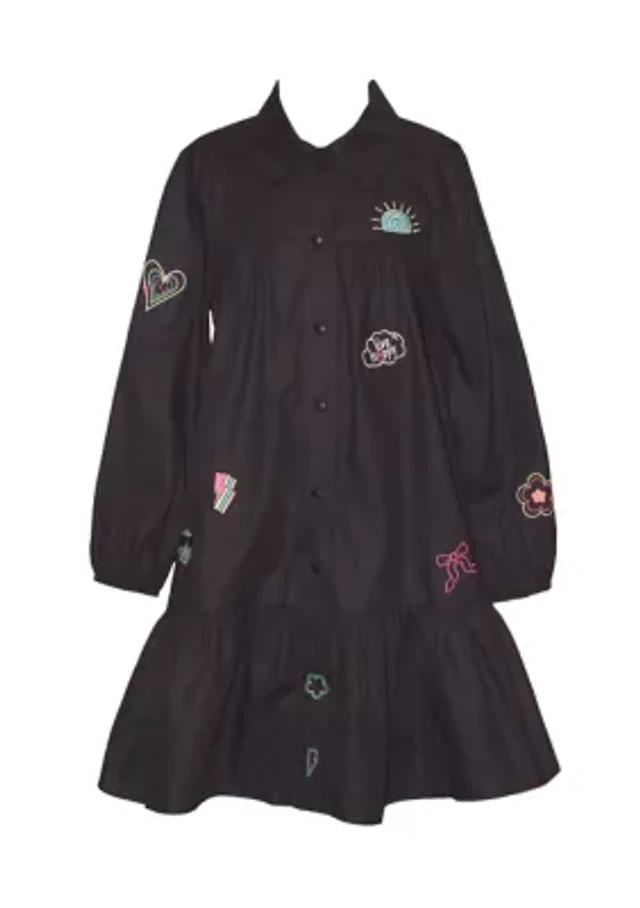 Girls 7-16 Blouson Sleeve Printed Collared Dress
