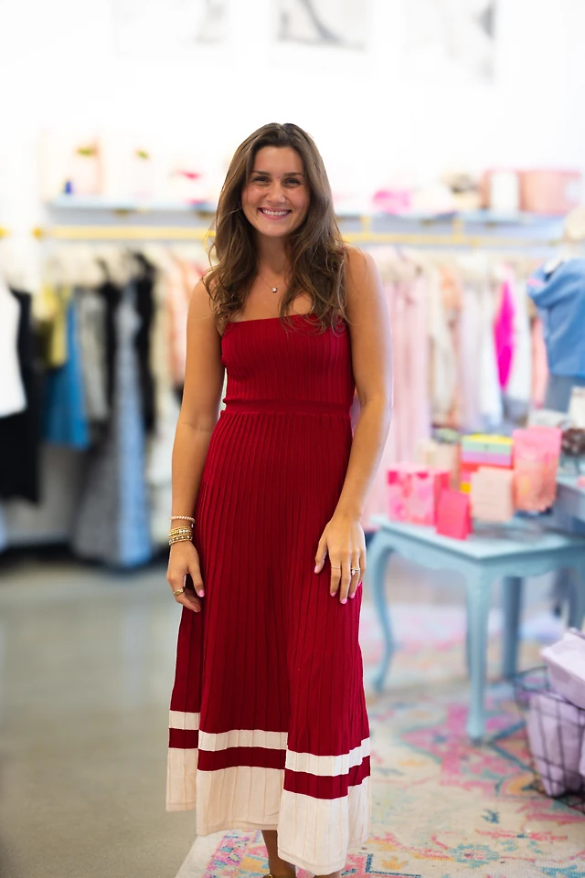 Hope & Henry Women's Sleeveless Ponte Skater Dress with Waist Sash
