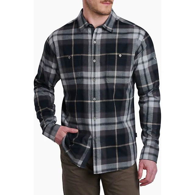 Plaid Double Button Pocket Stretch Flannel Shirt