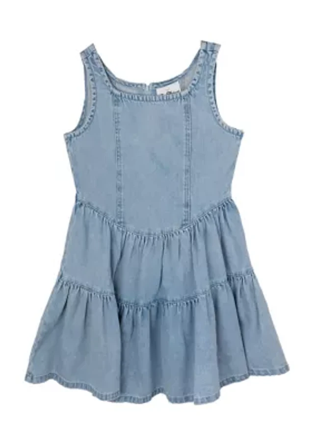 Girls 7-16 Denim Dress with Tiered Skirt