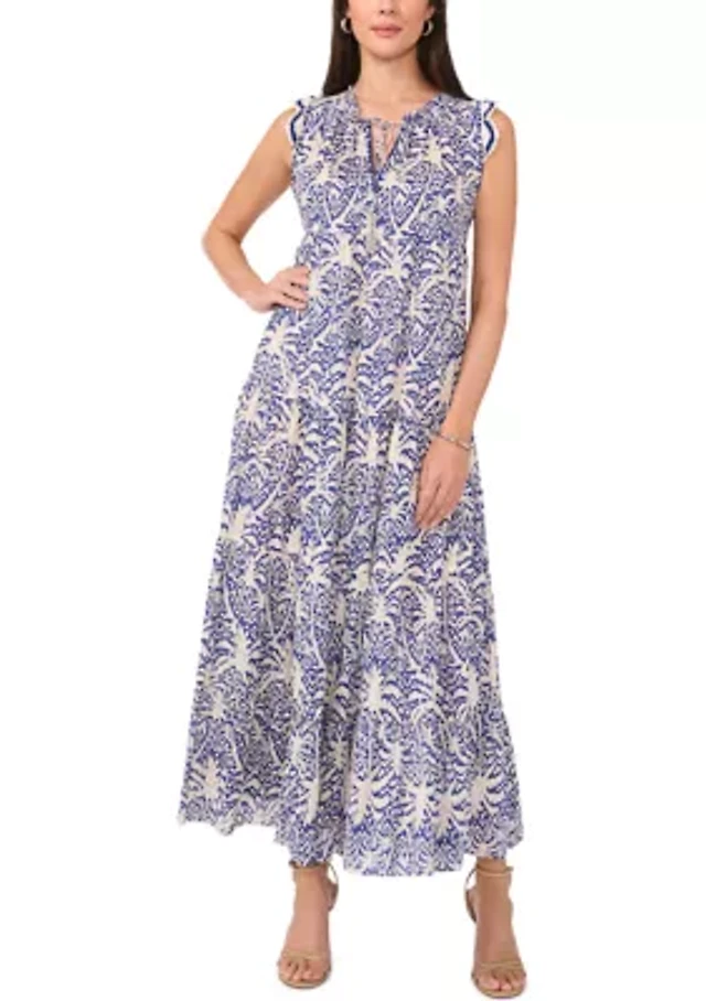 Flutter-Sleeve Dress with Eyelet Embroidery