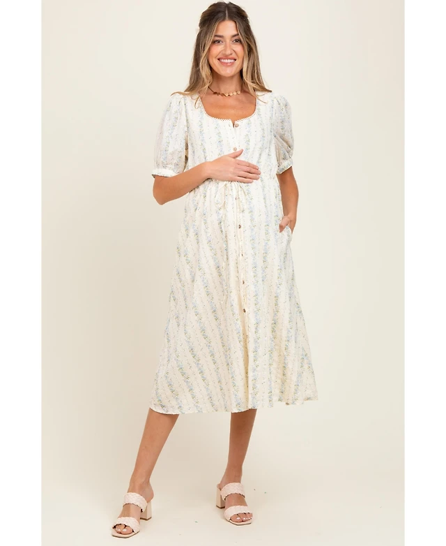 Pinkblush Plus Size Navy Blue Smocked Square Neck Flutter Short Sleeve Maternity Midi Dress