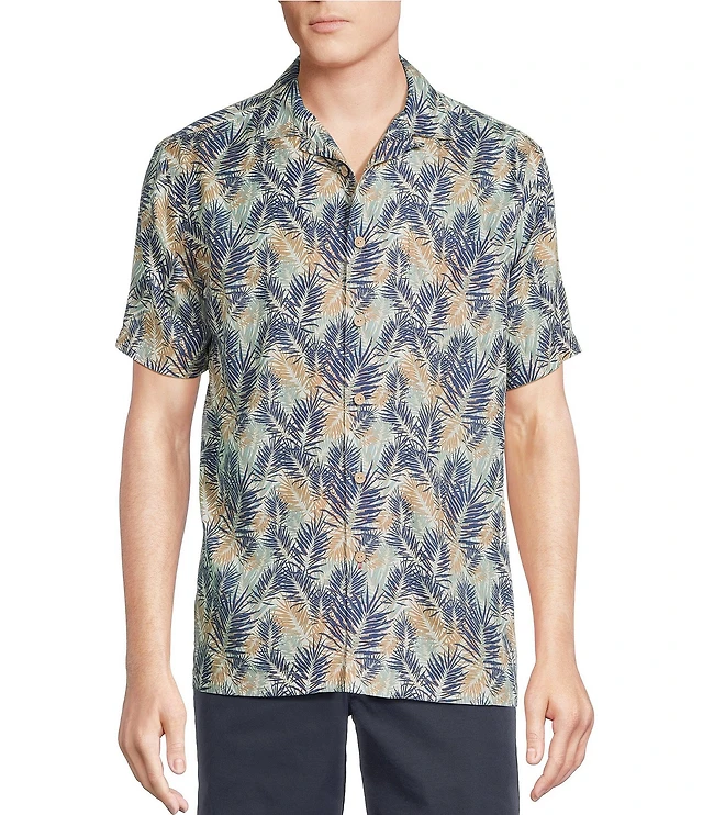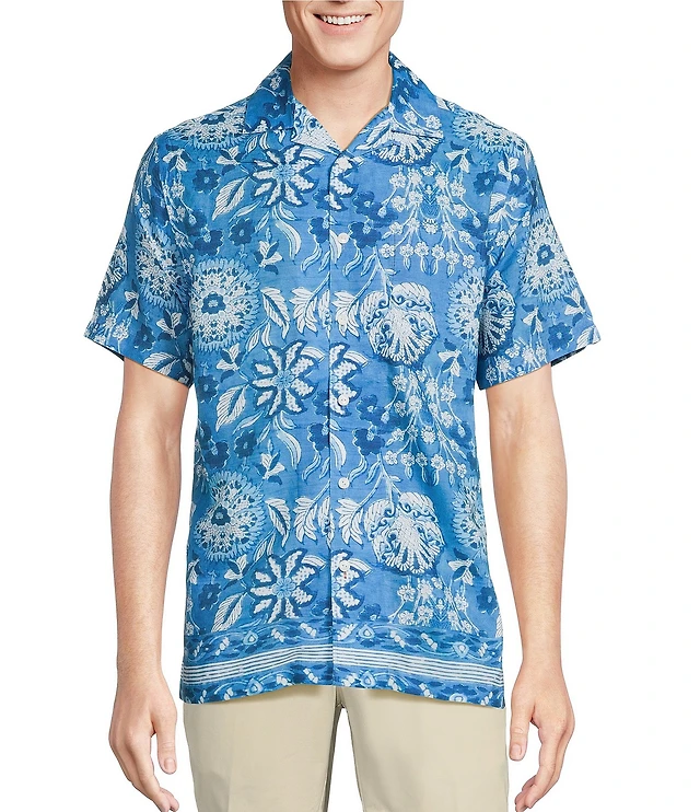 Cremieux Blue Label Island Landscape Print Short Sleeve Woven Camp Shirt