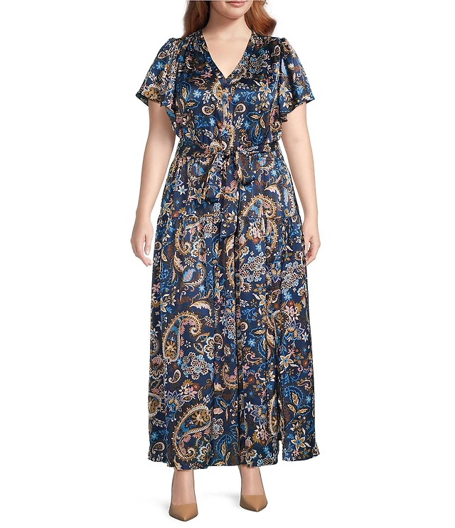Pinkblush Plus Size Navy Blue Smocked Square Neck Flutter Short Sleeve Maternity Midi Dress