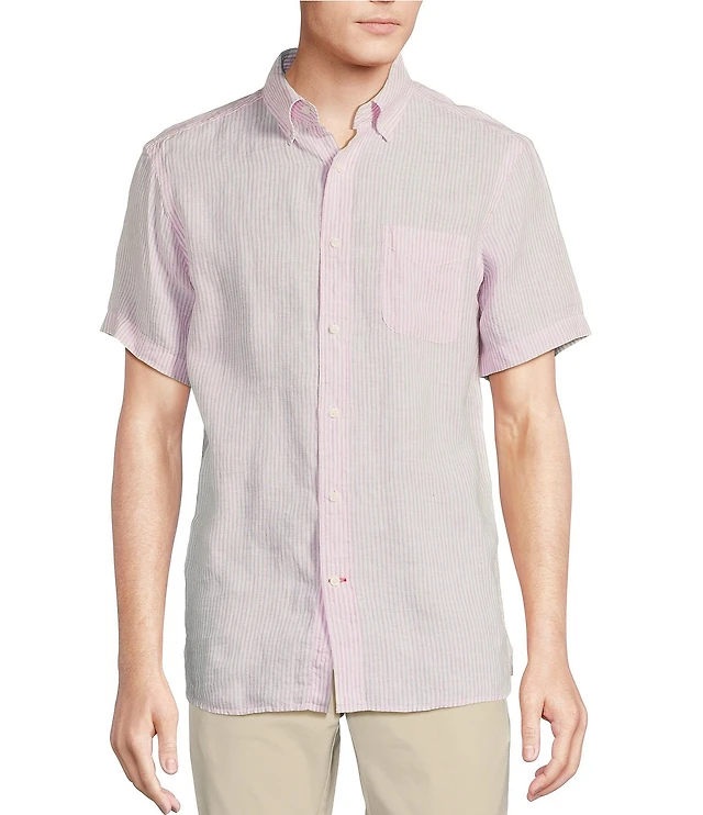 Cremieux Blue Label French Linen Stripe Short Sleeve Woven Shirt