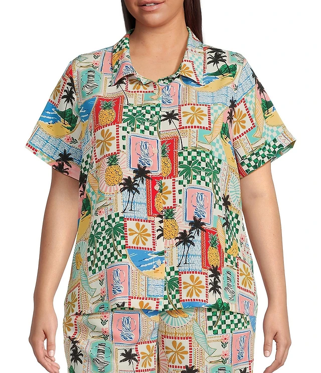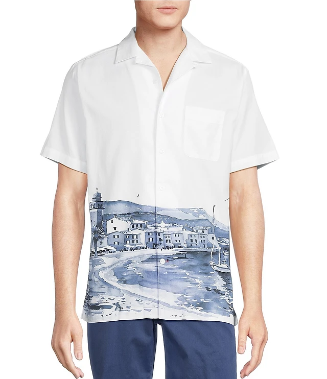 Cremieux Blue Label St. Tropez Short Sleeve Camp Landscape Print Woven Shirt