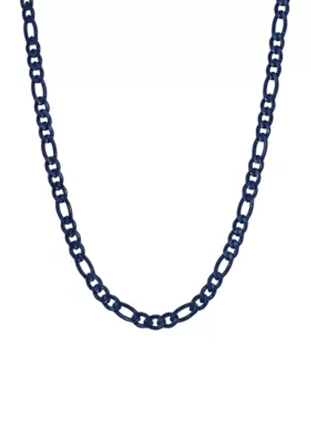 Stainless Steel 6 Millimeter Figaro Chain Necklace with Blue Acrylic