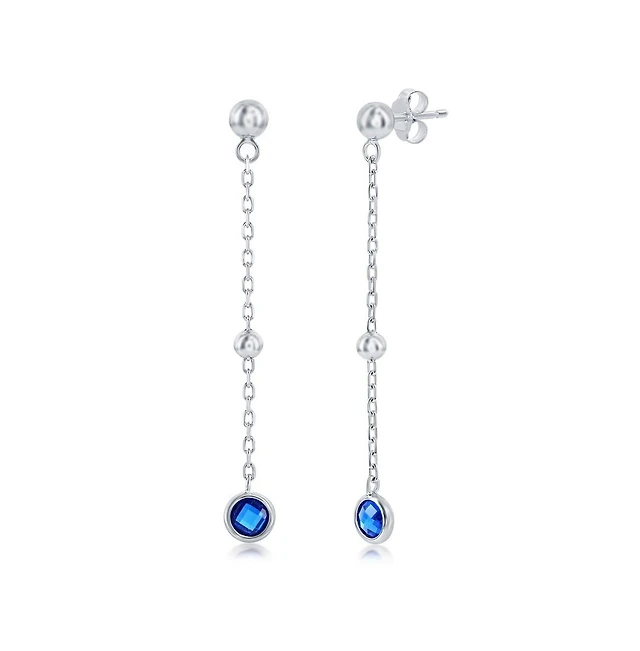 Sterling Silver White Gold Plating with Blue Cubic Zirconia Drop Earrings