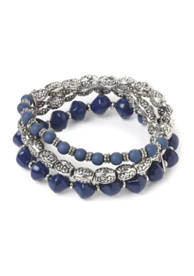 Blue Beaded Gold Tone Stretch Bracelet Set