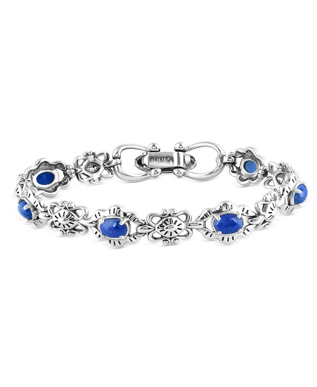 American West Jewelry Sterling Silver Genuine Lapis 3 Stone Cuff Bracelet Small - Large