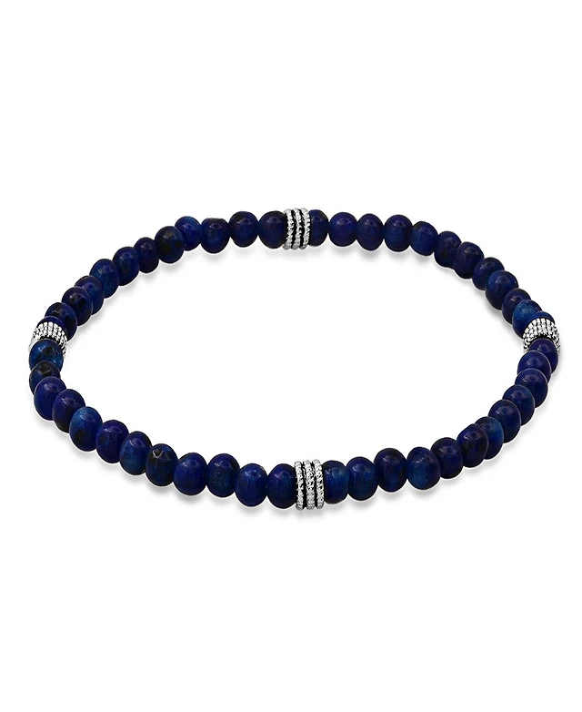 American West Jewelry Sterling Silver and Lapis Bead Necklace, 17 to 20 Inches