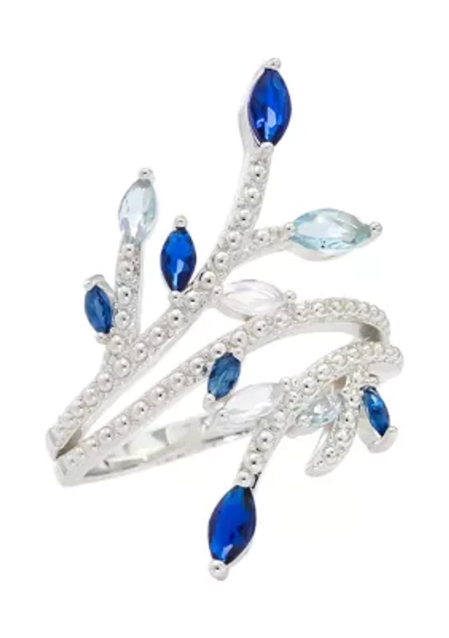 Cubic Zirconia & Blue Enamel Ring Sterling Silver