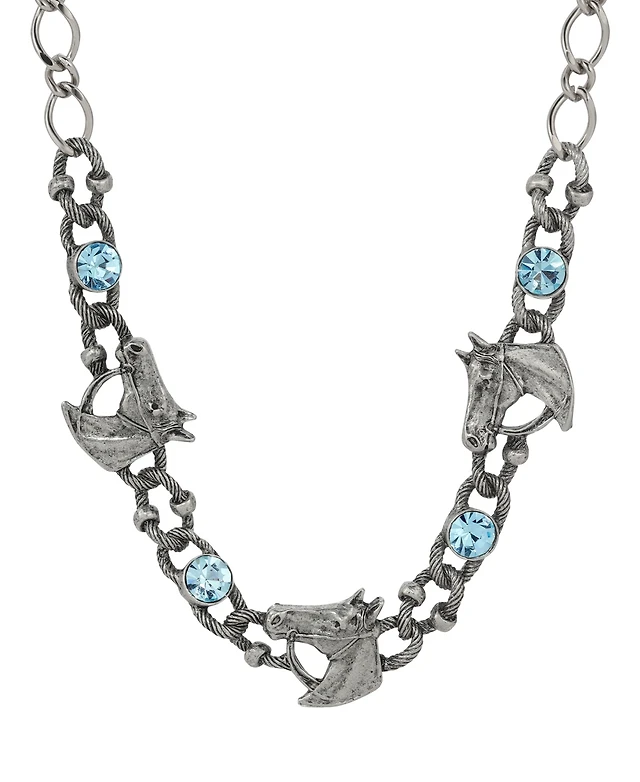 2028 Silver-Tone Horse Blue Crystal Necklace