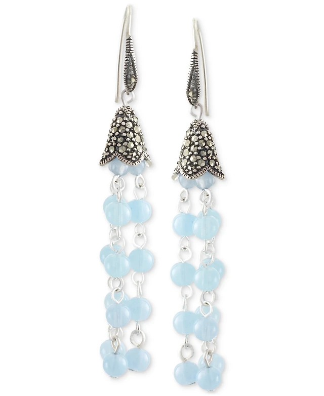Blue Sapphire (6-1/2 ct. t.w.) & White Sapphire (1/2 ct. t.w.) Chandelier Earrings in Sterling Silver, Created for Macy's