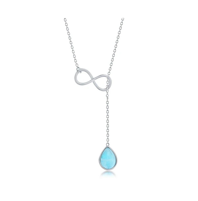Sterling Silver Pearshaped Larimar with Fwp and Tanzanite Cz Necklace