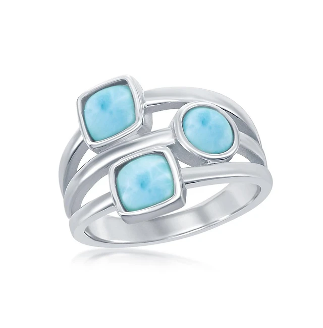 Caribbean Treasures Sterling Silver Round Pronged Larimar Ring