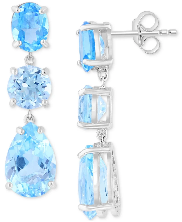 Effy Sky Blue Topaz (10-5/8 ct. t.w.) & Swiss Blue Topaz (3/8 ct. t.w.) Linear Drop Earrings in Sterling Silver