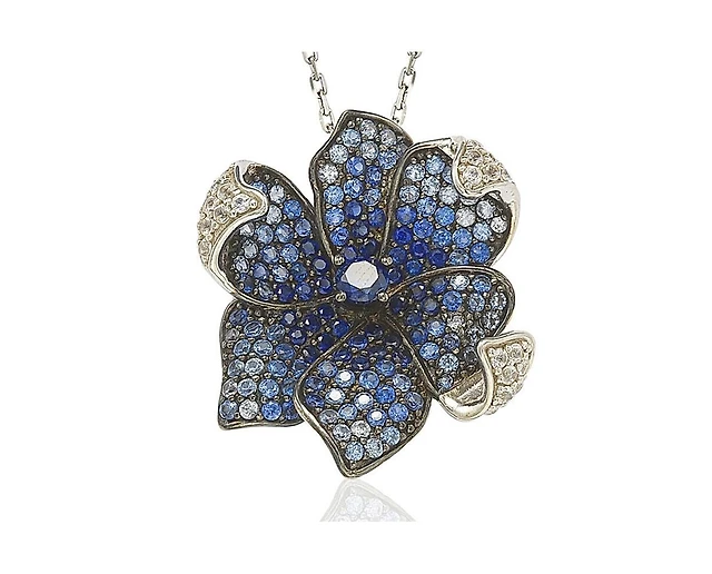 Suzy Levian New York Suzy Levian Sterling Silver Sapphire & Created White Sapphire Exotic Flower Pendant Necklace
