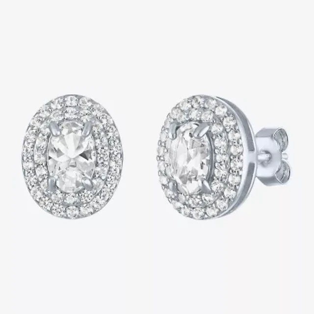 Womens Oval-cut Gemstone & 1/2 CT. T.W. Lab-Grown Diamond 10K Gold 9.4mm Stud Earrings