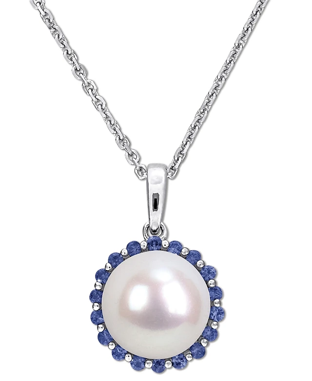 Womens Gemstone Sterling Silver Cushion Pendant Necklace