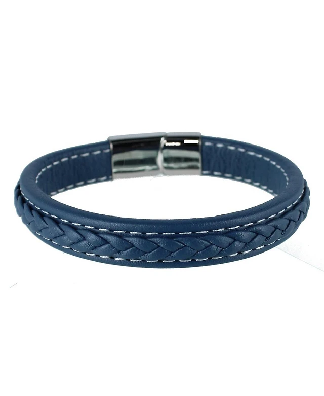 Mens Black Agate Stainless Steel Beaded Bracelet