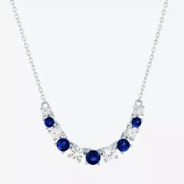 Sterling Silver Two-Tone Cubic Zirconia Round Colored Necklace with Gold Link Chain