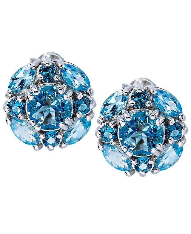 Macy's Blue Topaz (2 ct. t.w.) & Diamond Accent Stud Earrings in 14k Yellow Gold