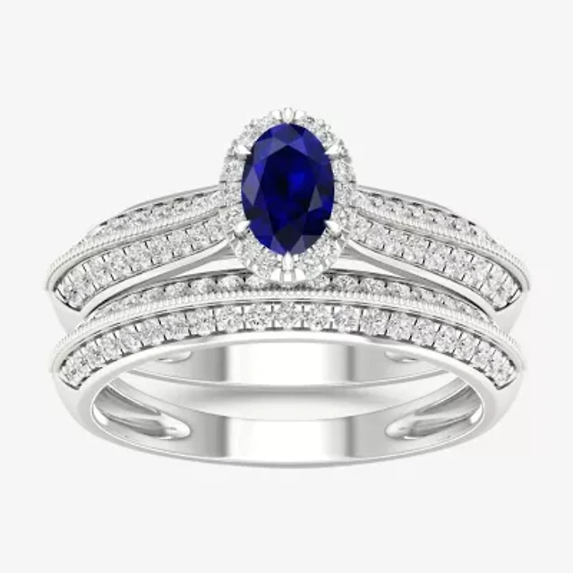 Modern Bride Gemstone and 1/2 CT. T.W. Diamond Oval Halo Bridal Set 10K Gold