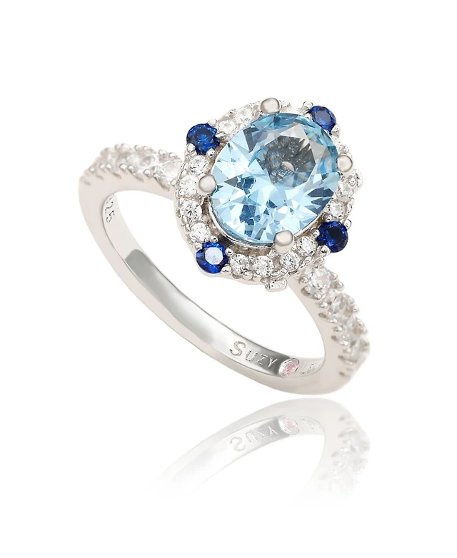 Suzy Levian Sterling Silver Oval Cut Sapphire Created White Sapphire Anniversary Ring