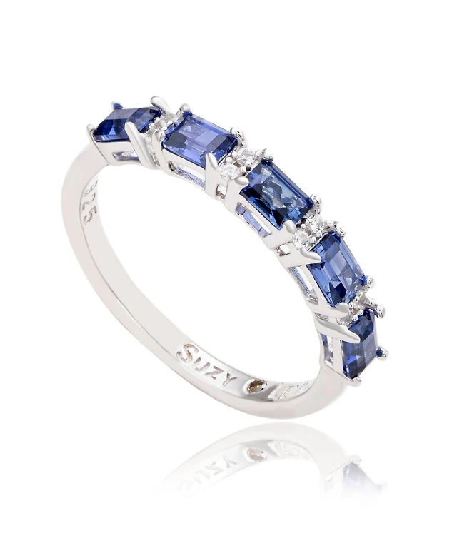 Suzy Levian Sterling Silver Sapphire & Created White Assacher Cut Eternity Band Ring