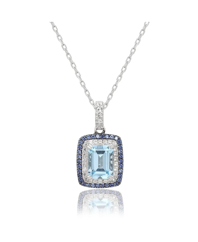Suzy Levian Sterling Silver Emerald Cut Topaz And Sapphire Double Halo Pendant