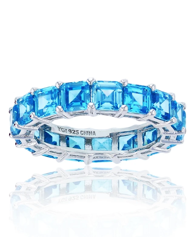 Suzy Levian Sterling Silver Sapphire & Created White Emerald Cut Proposal Ring