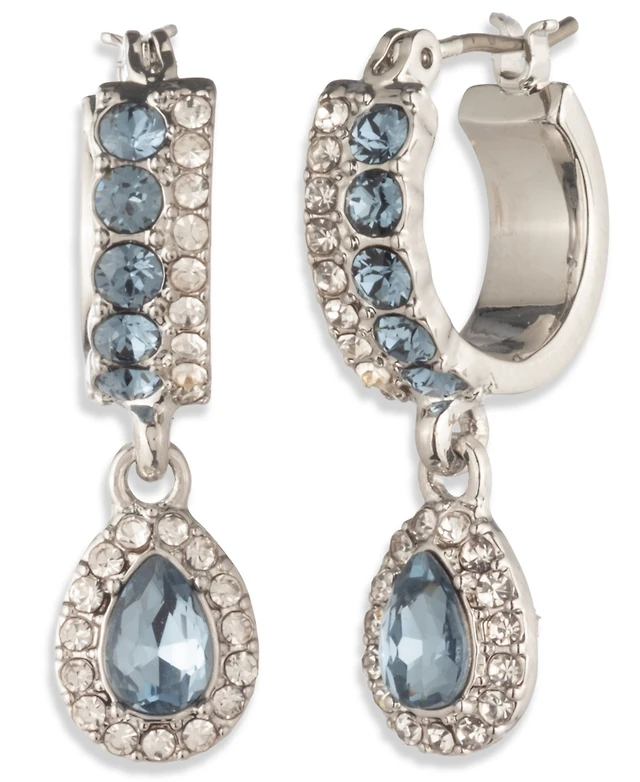 Silver Treasures Womens Crystal Sterling Silver Drop Earrings