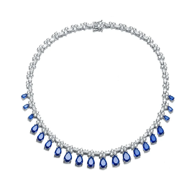 Sterling Silver White Gold Plated Pear Shaped Pendant Necklace with Colored Cubic Zirconia