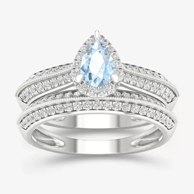 Aquamarine (1-1/8 ct. t.w.) & Diamond (1/2 Bridal Set 14k White Gold